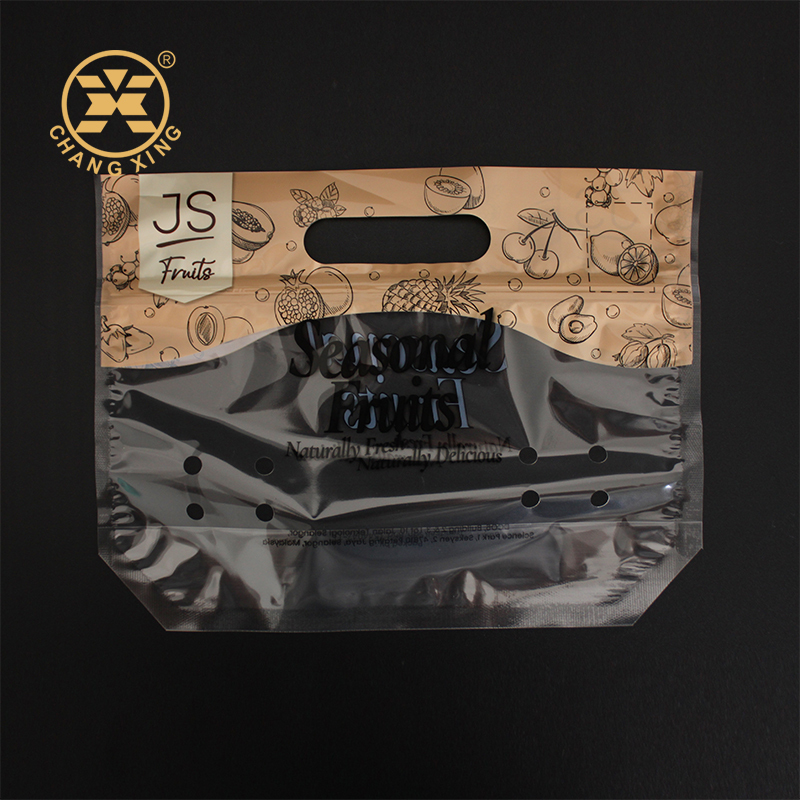 Buah-buahan dan sayuran yang dapat ditutup kembali kantong berlubang berdiri kantong buah segar dengan lubang ventilasi pengemasan kantong ritsleting plastik